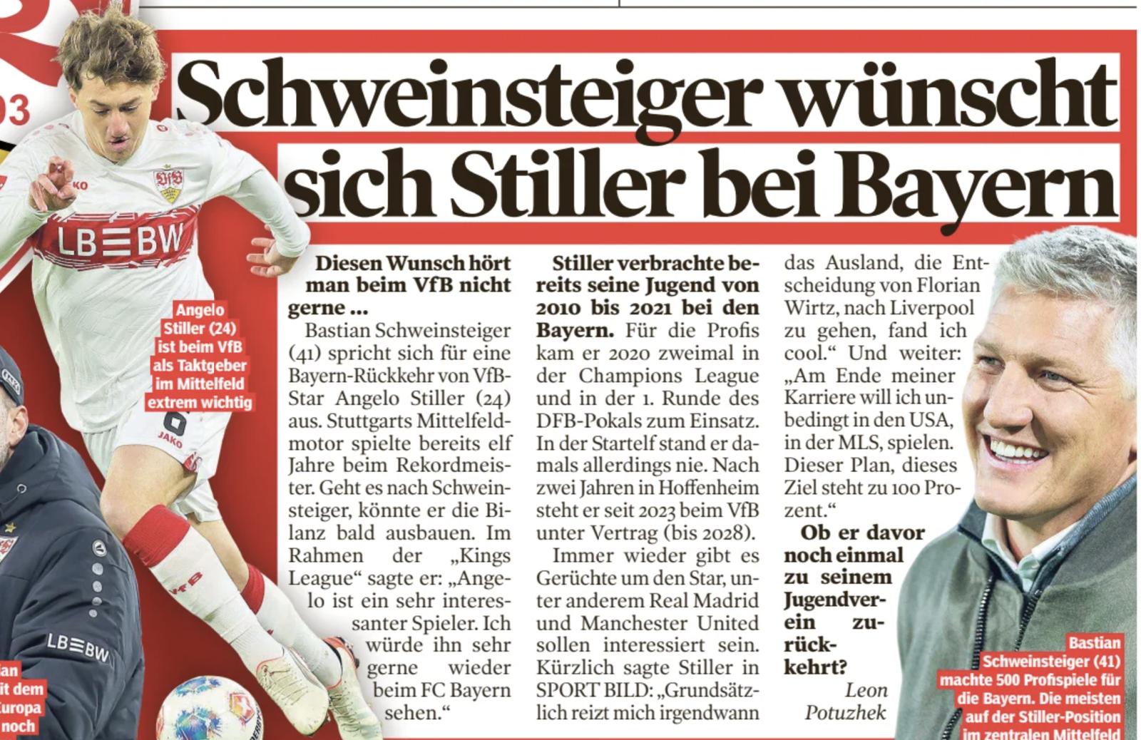 Bastian Schweinsteiger expressed his desire to see Angelo Stiller return to Bayern Munich, praising the VfB Stuttgart midfielder. However, Manchester United’s interest in Stiller and his own desire to play abroad may complicate matters. Stiller has also hinted at a move abroad, with Manchester United reportedly showing strong interest in a potential €50m deal.
